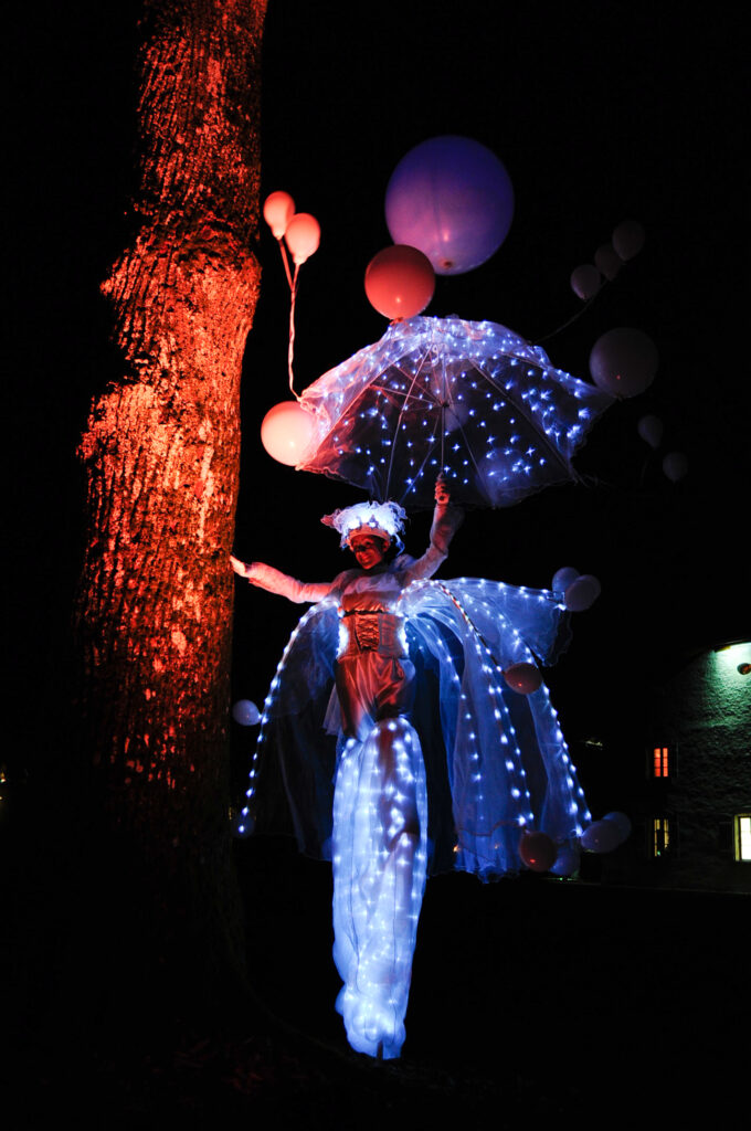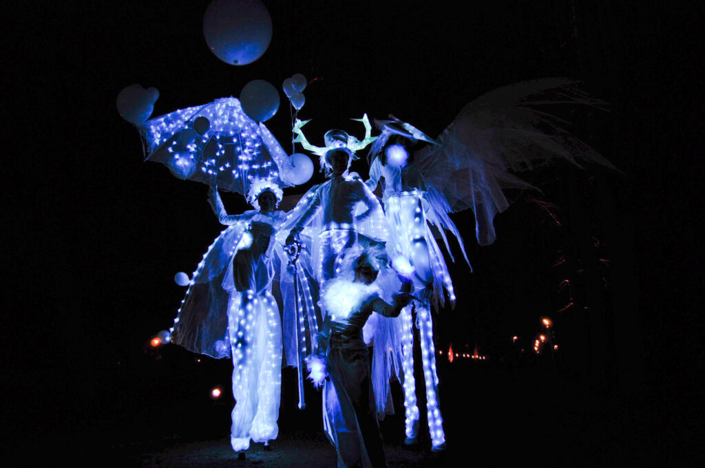 Déambulation lumineuse et sonorisée où s’entrecroisent comme dans un rêve éveillé des personnages fantastiques.