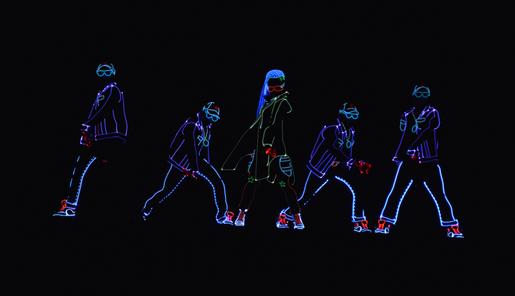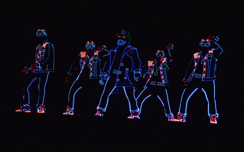 9 personnes > 6 danseurs, 1 danseuse, 1 technicien, 1 régisseur