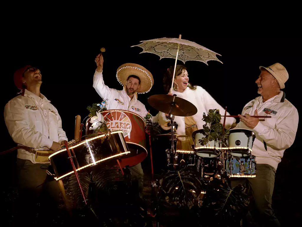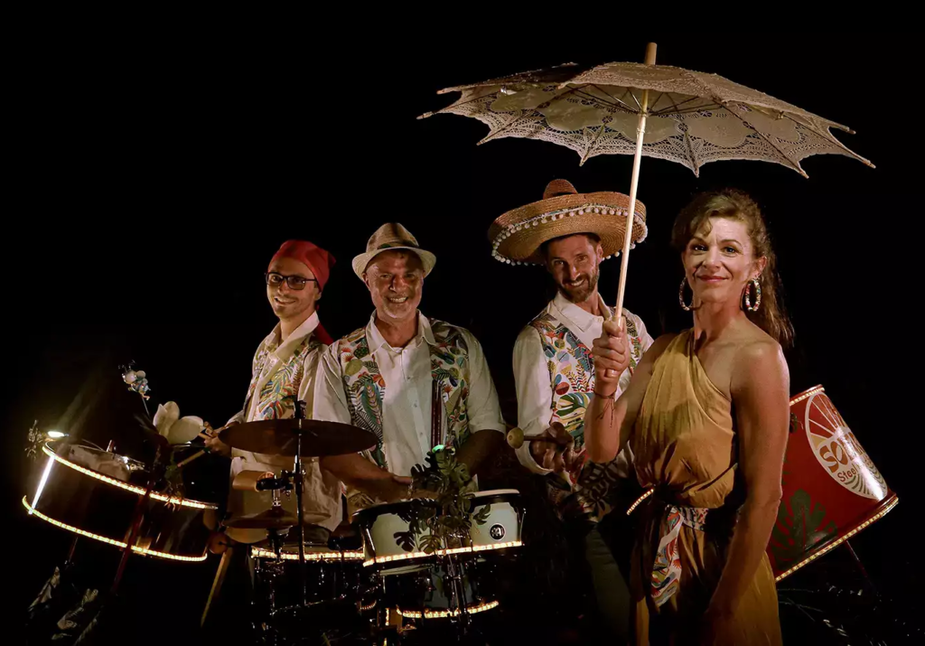 En intérieur ou en extérieur que ce soit en fixe ou en déambulation, le groupe Solario SteelBandSong joue la musique en mode tout terrain.