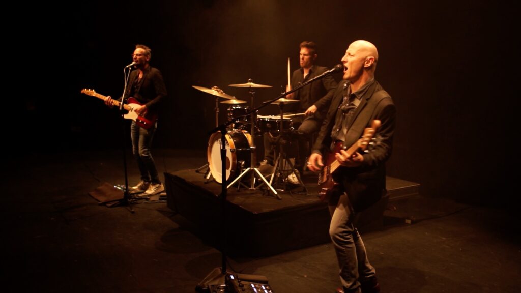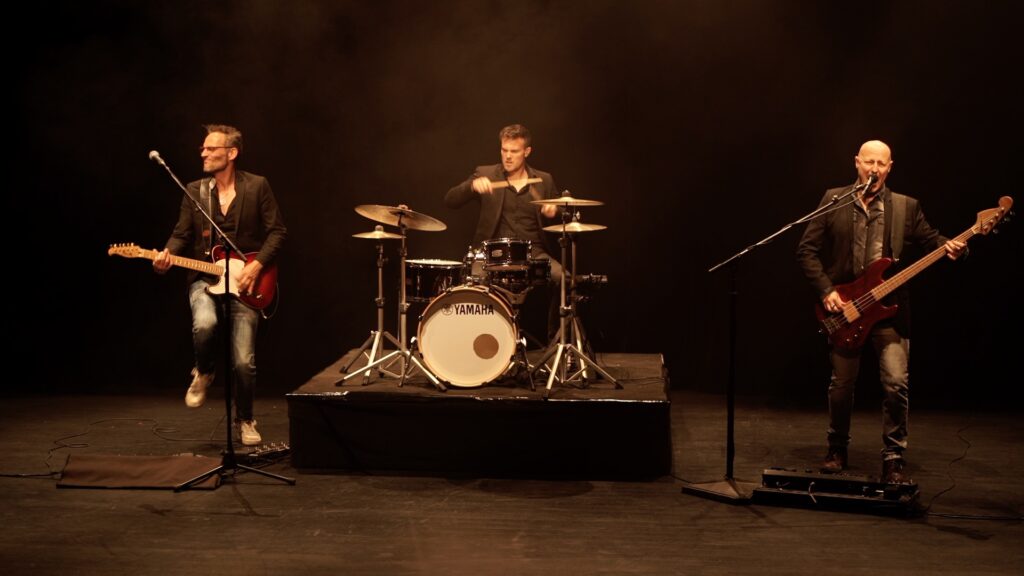 Trio : 1 bassiste chanteur, 1 guitariste chanteur et 1 batteur