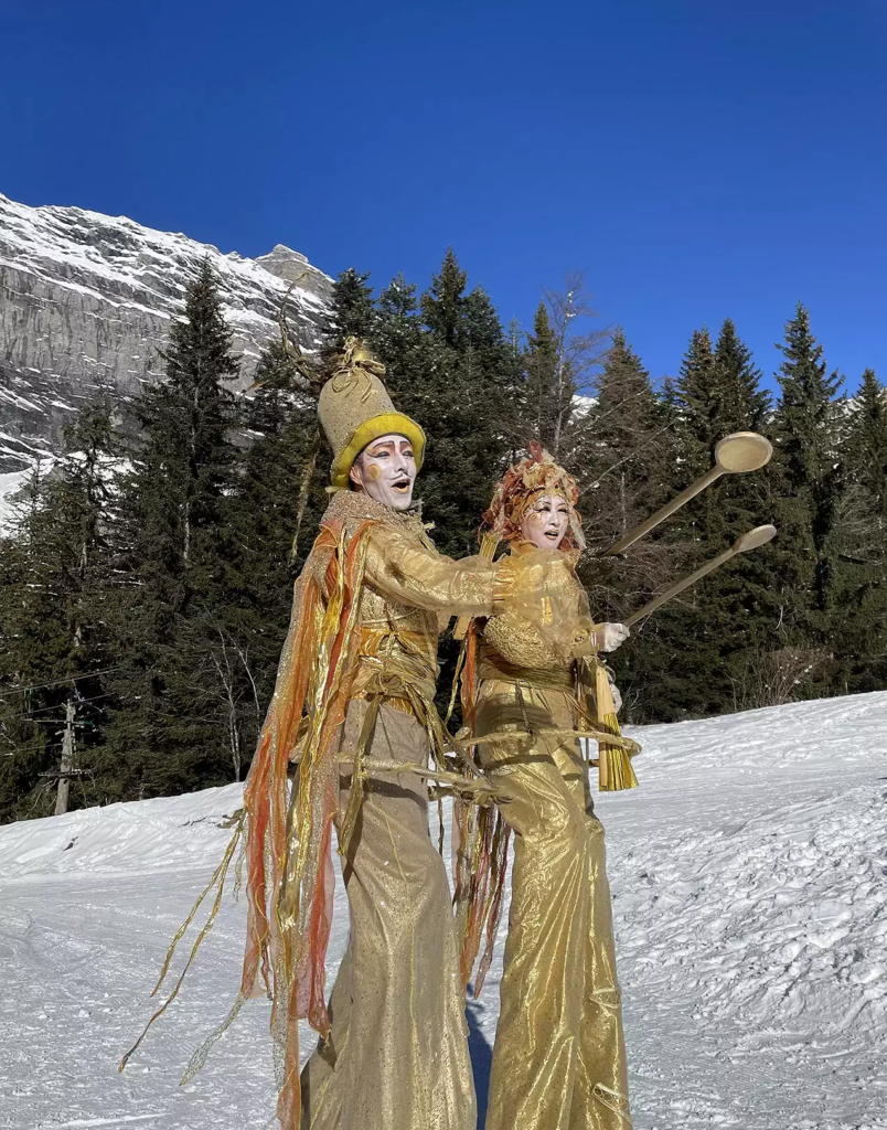 - Déambulation burlesque sur échasses avec les Gourmandes, qui goutent, savourent et offrent à vos papilles des brassées de chocolats dans un chuchotement de gourmandises.